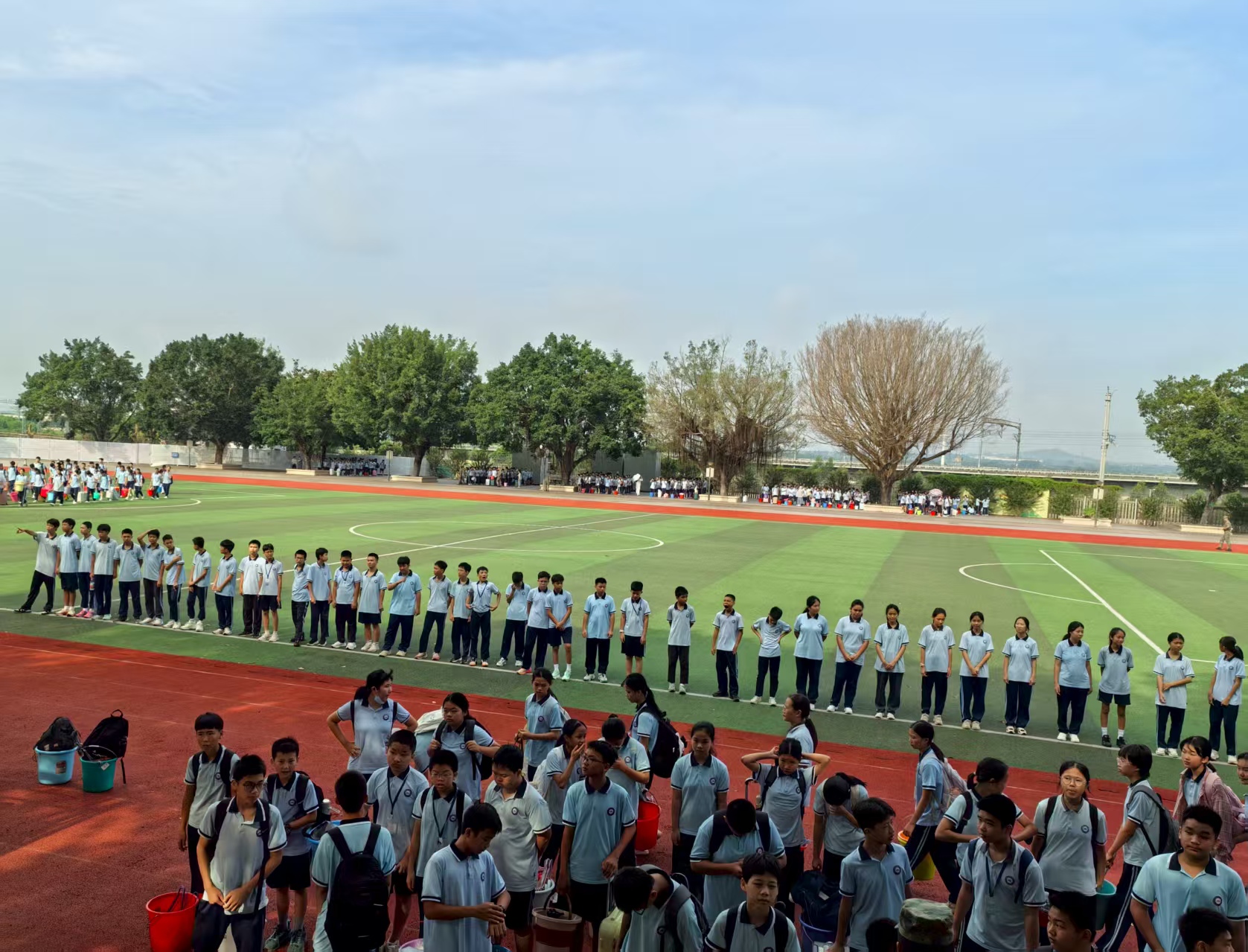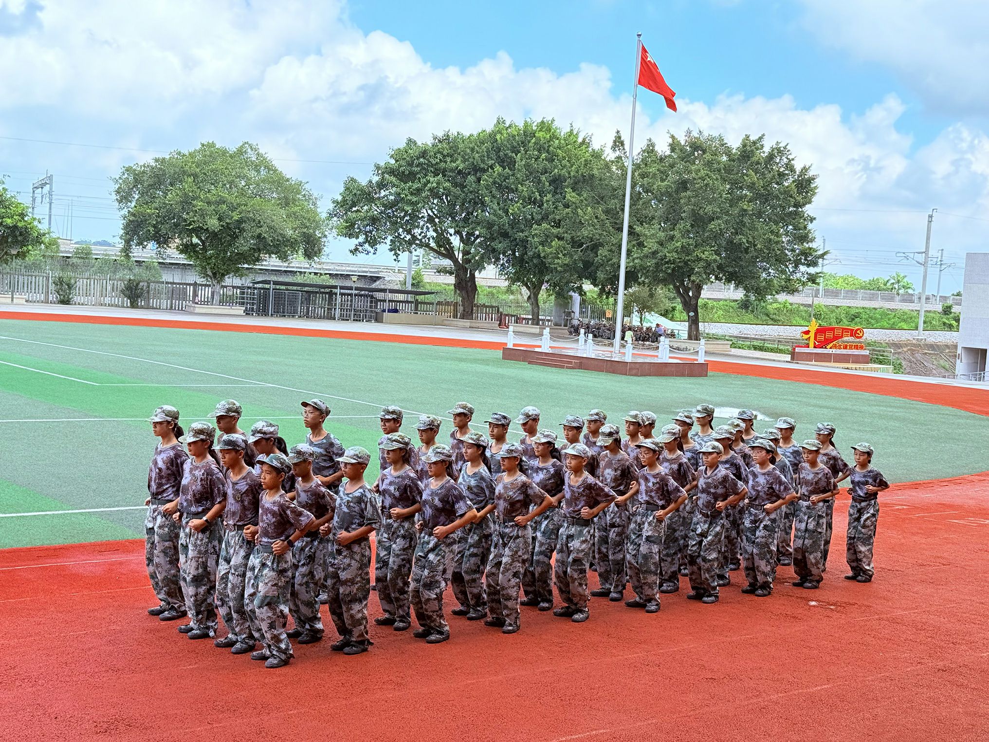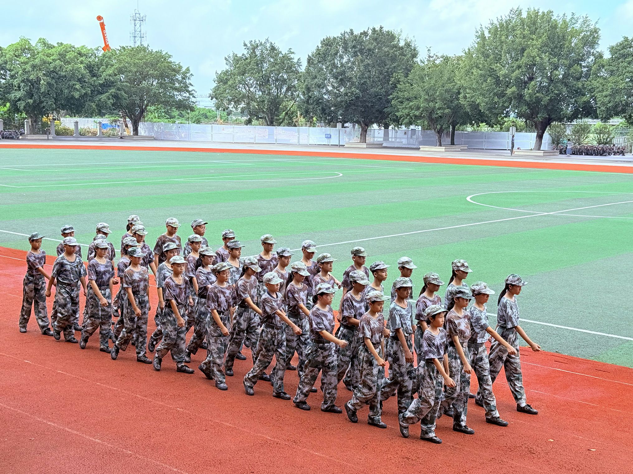 秋风送爽,载着初中学生的大巴车有序驶入基地。车门拉开后,学生们拎着背包、拖着行李箱欢跃下车,背包挂件随脚步轻晃,满是对活动的期待。带队老师组织集合时,教官浑厚的“立正”口令随即传来,学生们迅速收敛起喧闹,在教官的指导下,两分钟内便将松散的队伍整理得整整齐齐;换上迷彩服后,大家瞬间有了“小军人”模样,脸上满是开心与期待,对接下来的生活充满向往。