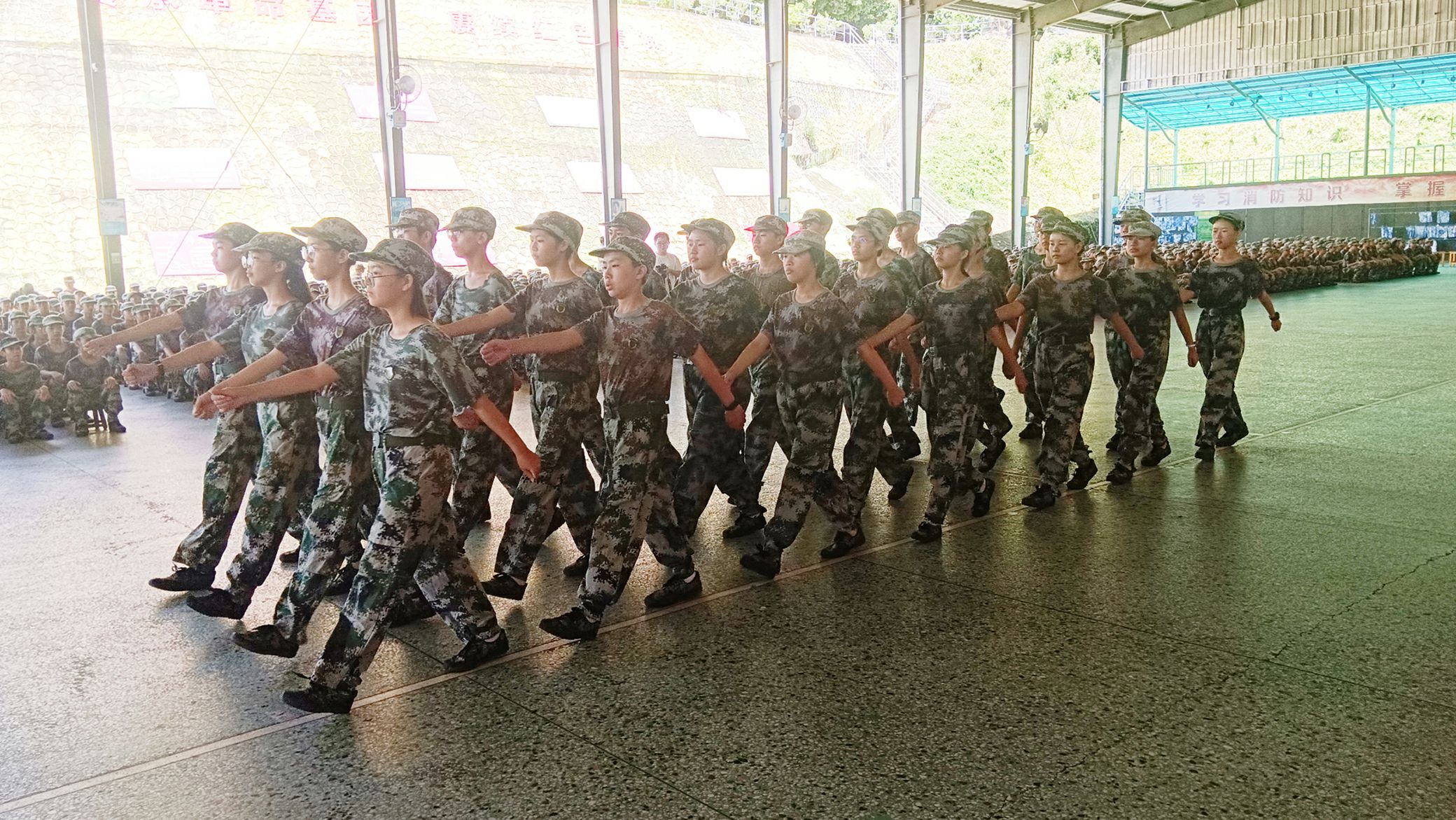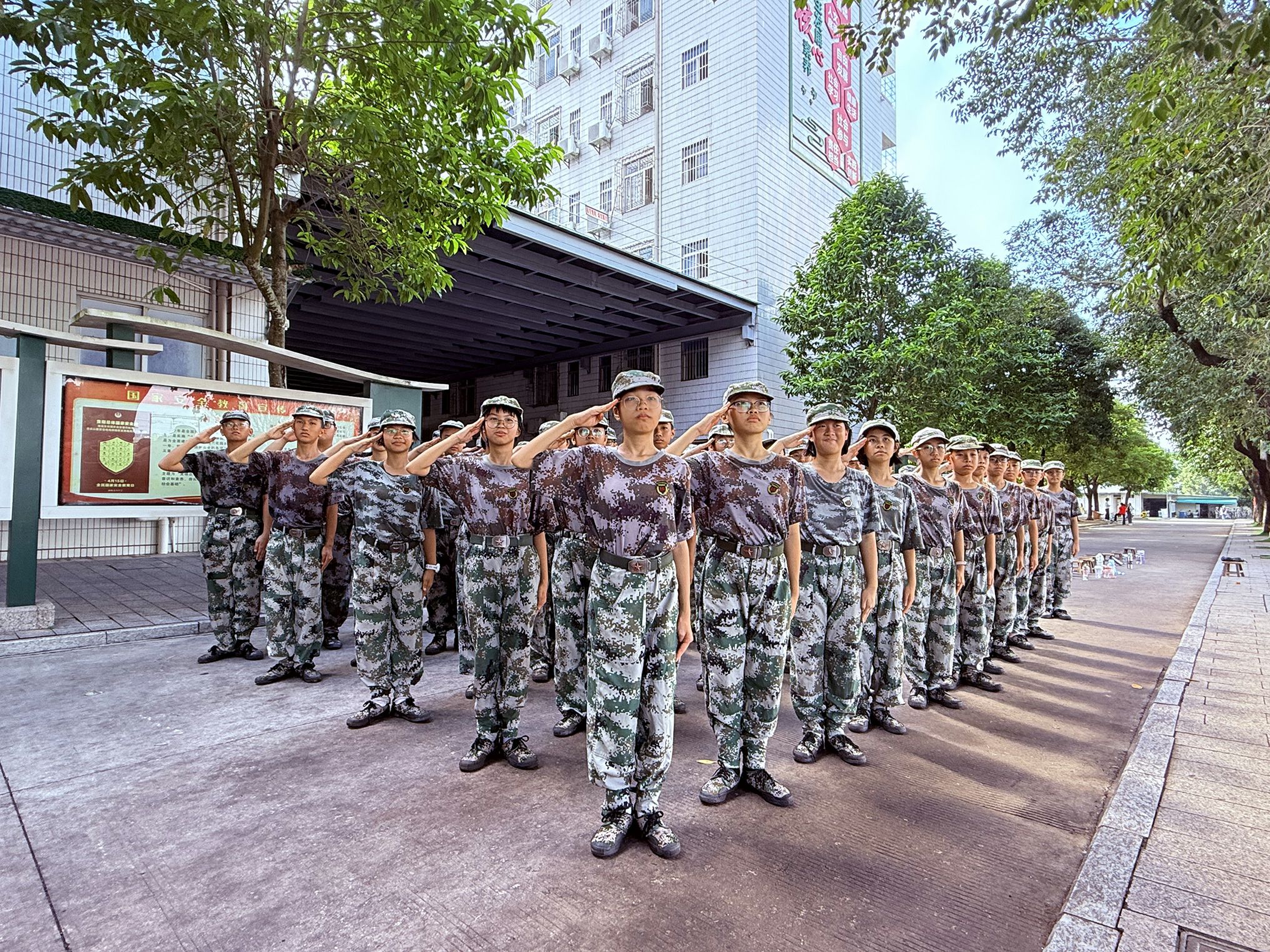 阳光下的操场,清脆口令回荡。身着迷彩服的教官身姿挺拔地站在队伍前,“立正!”洪亮指令落下,原本略带松散的队伍瞬间调整,学生们脚跟并拢、眼神坚定地看向正前方。“向右转!”“唰”的一声,动作整齐划一,队伍如整体般利落转向右侧。在教官严格要求和耐心指导下,很快便无人动作迟疑或错位。进入齐步训练,学生们排成笔直横队,听着口令稳步向前,脚步声与摆臂声交织,队伍直线般匀速推进,节奏逐渐校准。阳光洒在他们认真的脸上,汗水顺着脸颊滑落,却没人抬手擦拭,只专注地跟着队伍前行。