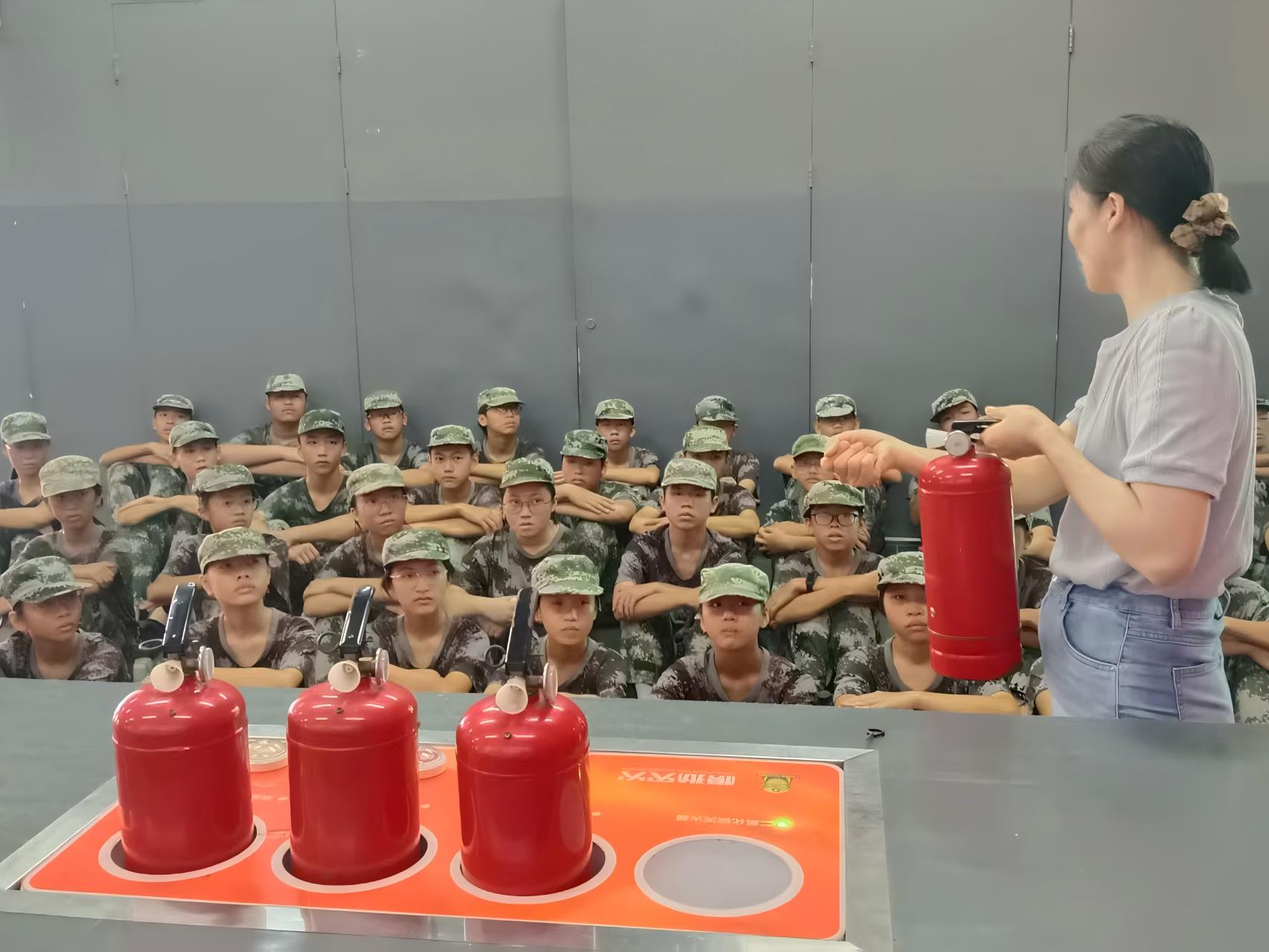 “大家一定要记住‘提、拔、握、压’四字口诀!”课堂上,老师手持模拟灭火器,边演示边强调关键步骤:先提握灭火器手柄,拔掉模拟铅封与保险销,一手握住前端的喷管对准火源根部,另一手按压压把。当模拟火源(火焰道具)缓缓亮起,模拟灭火程序同步启动。虽无真实干粉喷出,但随着同学们按照口诀逐步操作,道具火焰便会根据动作的准确性实时“熄灭”。