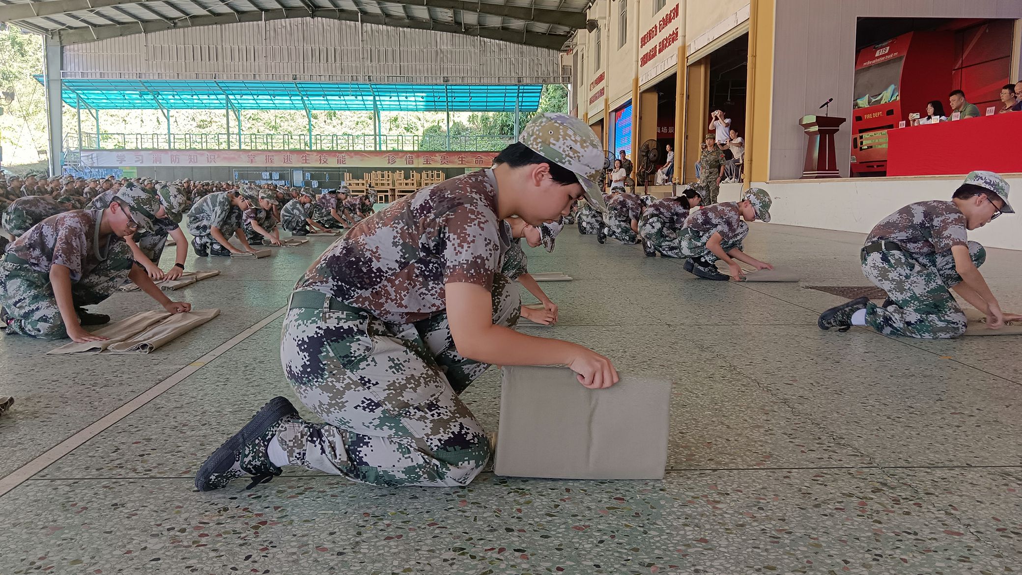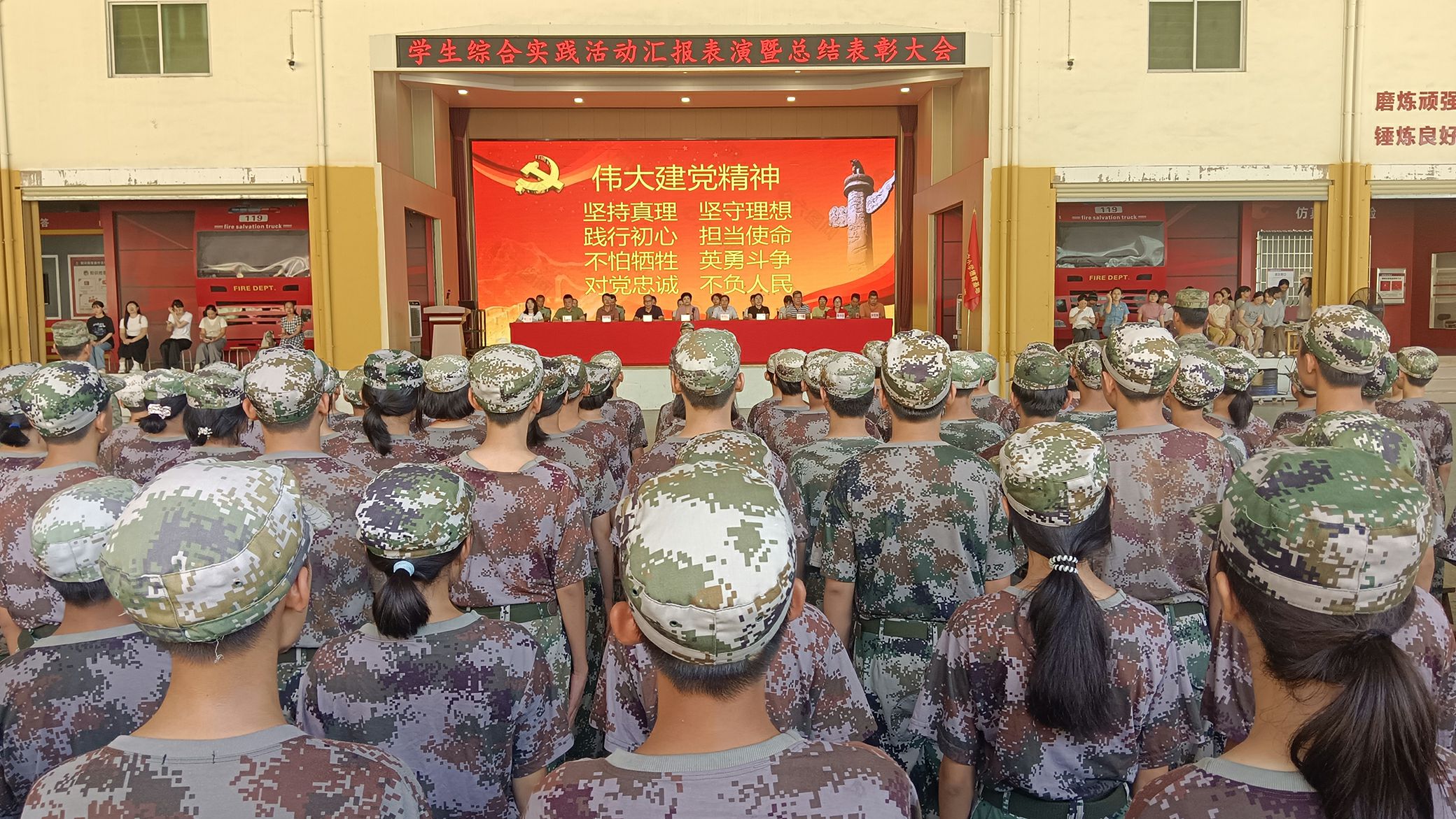 四天的呐喊铿锵有力,四天的坚持从未停歇,这份执着与汗水,终在汇报表演中凝成震撼的句点。现场,雷鸣般的掌声一次次响彻全场:有诵读《我的祖国》之爱国情怀,有“豆腐块”被褥笔直的棱角与队列踏地的铿锵声等,有匕首操展示利落如刃,有消防灭火技能演练中“拔、冲”的节奏与生命安全同频,从学生代表分享心得,到领导代表给予殷切期望,再到实训处梁华胜副主任对活动进行总结,每一个环节都诠释着同学们收获的自律自强,更丈量出磨练挑战、破茧蜕变的成长分量。