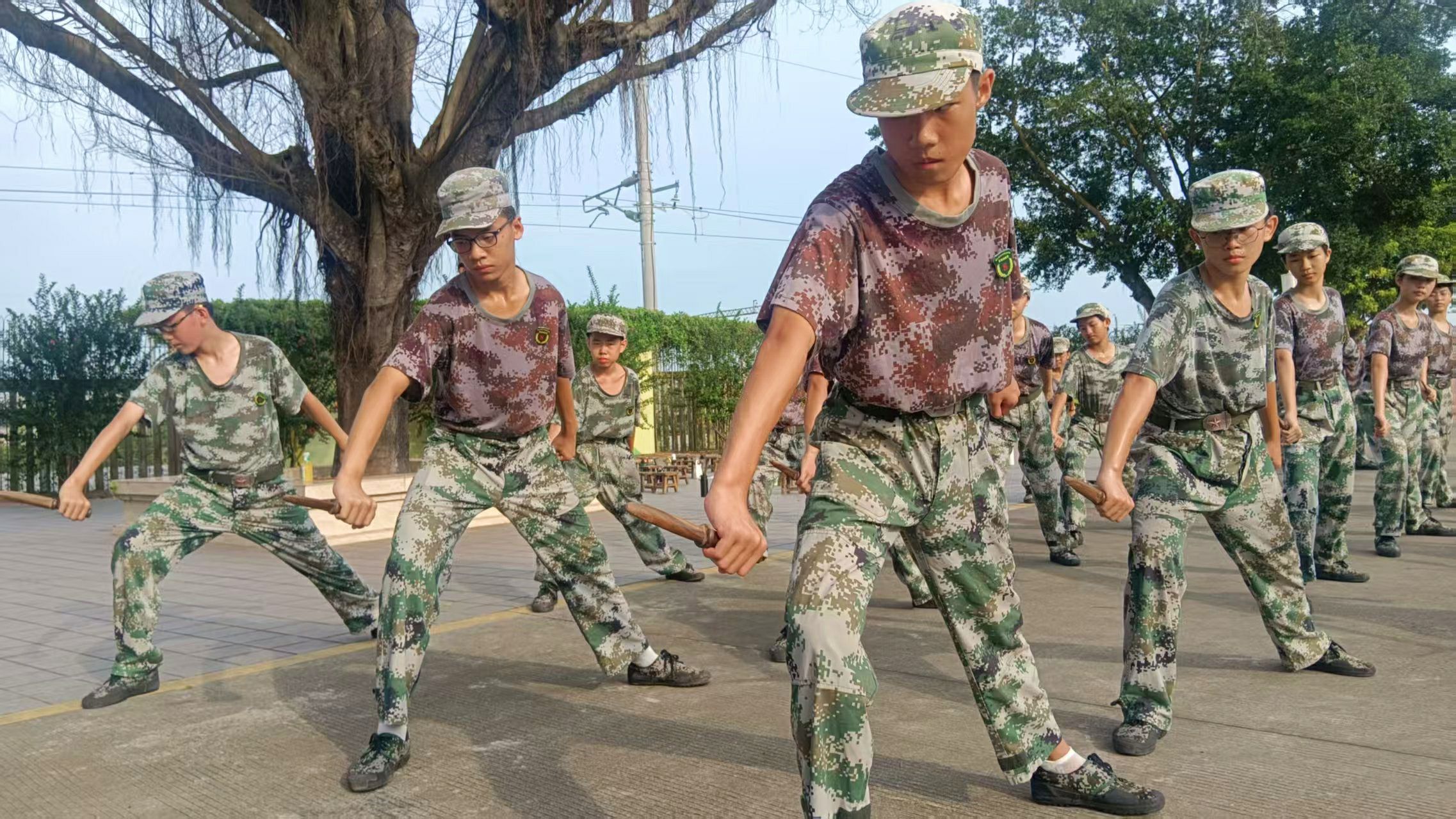 训练场上,少年们的蜕变令人动容。从站军姿摇摆不定到步伐整齐划一,从初握捕俘刀生涩笨拙到挥刀潇洒自如,每一滴汗水都见证着他们的坚持,每一次摆臂都彰显成长。阳光晒黑了脸庞,鞋子磨破了脚,却让他们的眼神愈发坚毅明亮,尽显青春锐气。