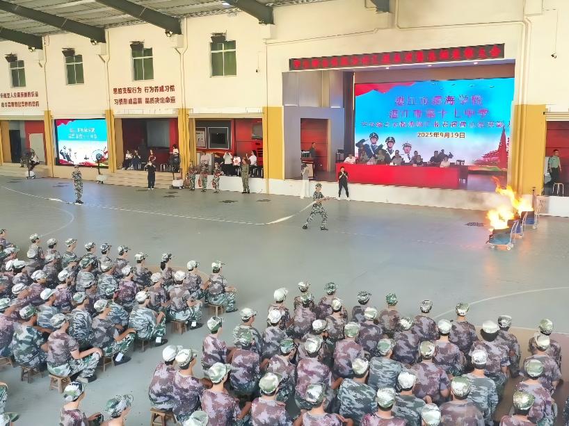 9月15日,当清晨的阳光洒满市中小学德育基地的校园,湛江市滨海学校和湛江市第十七中学初一年级的1300多名少年披上了迷彩,在这里他们将以实践为笔、以体验为墨,在技能实训中锤炼本领,在文化熏陶中涵养底蕴。