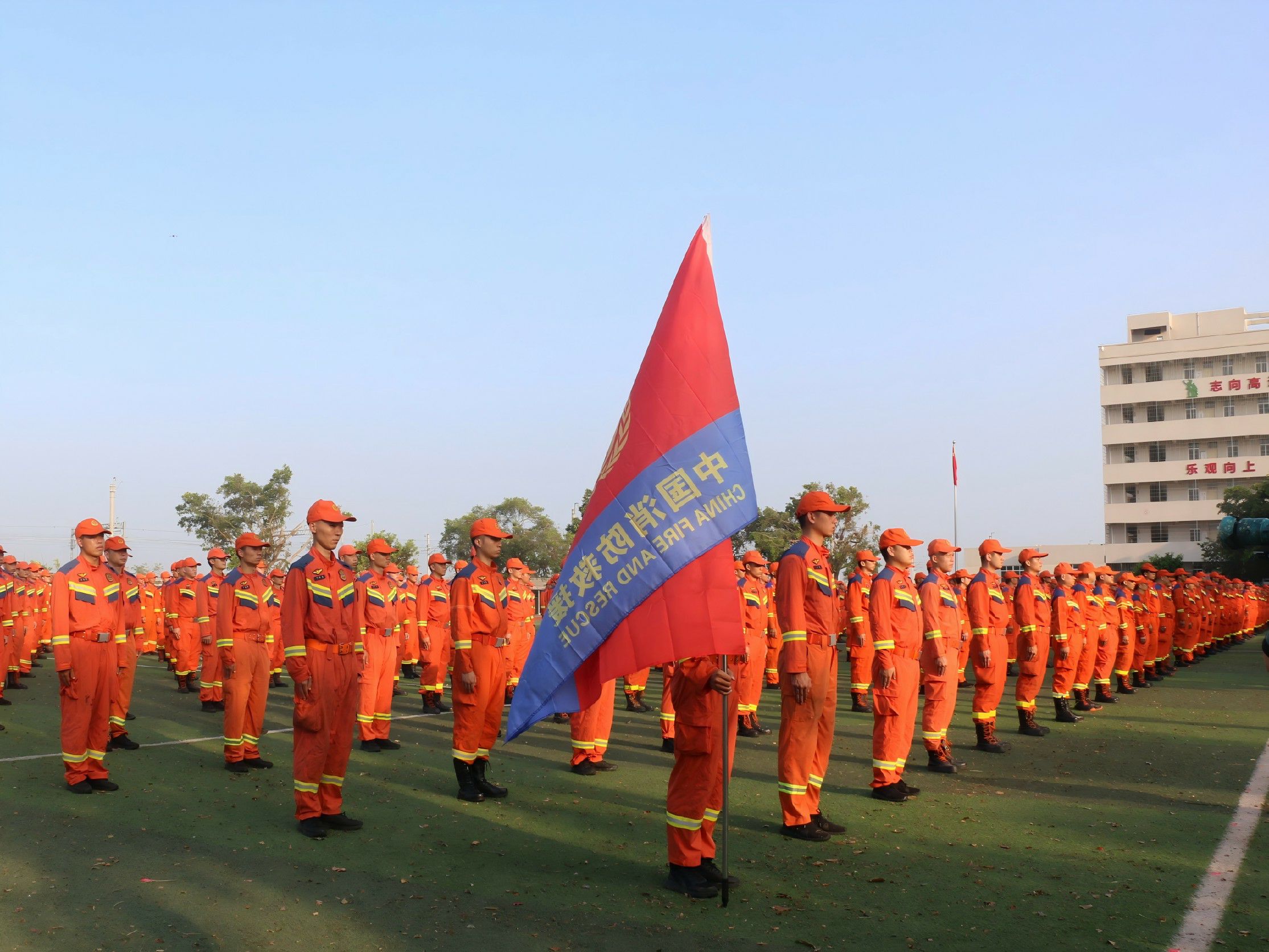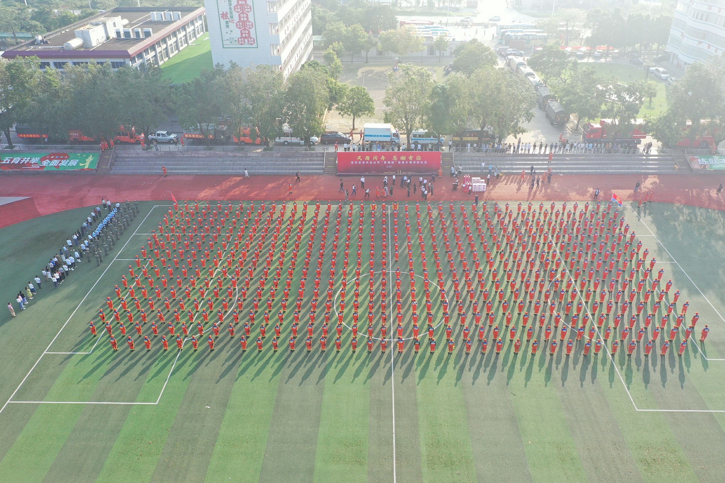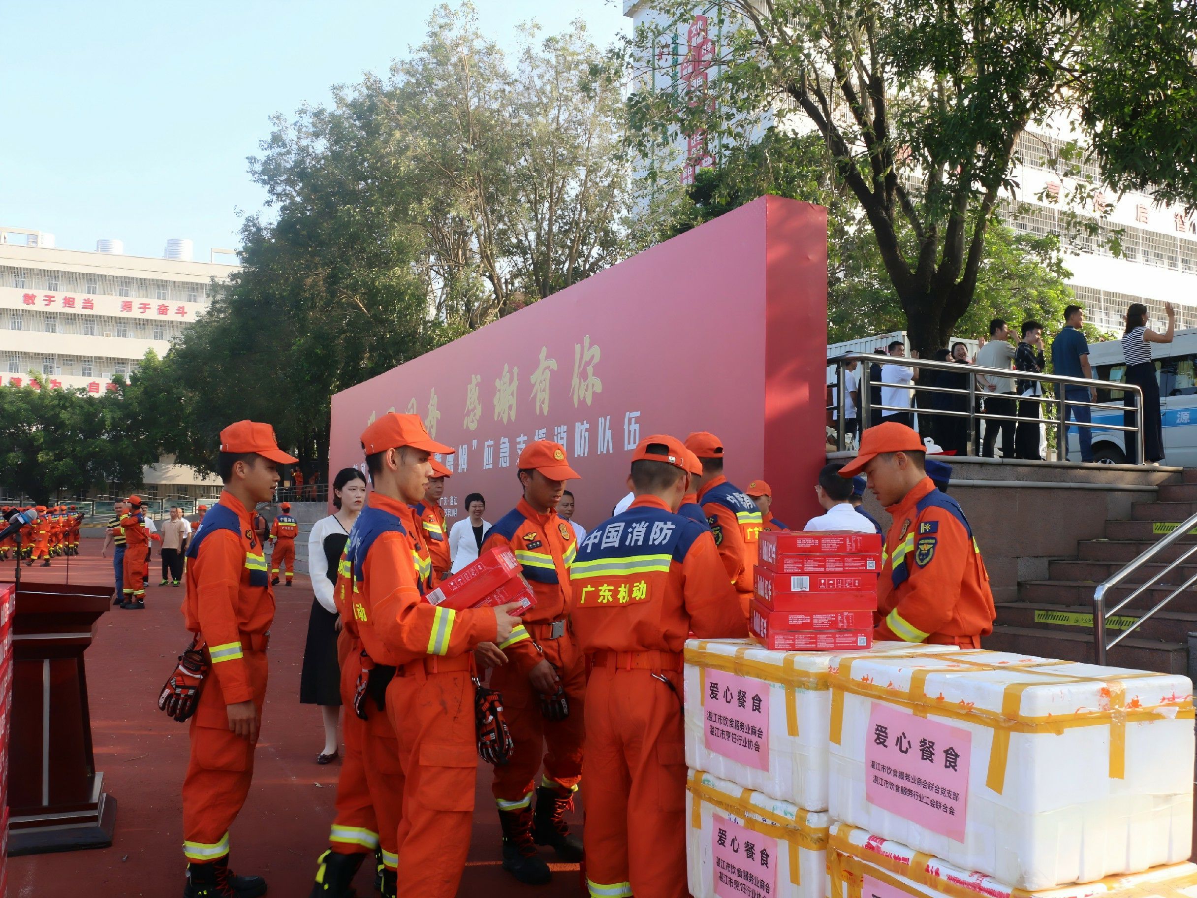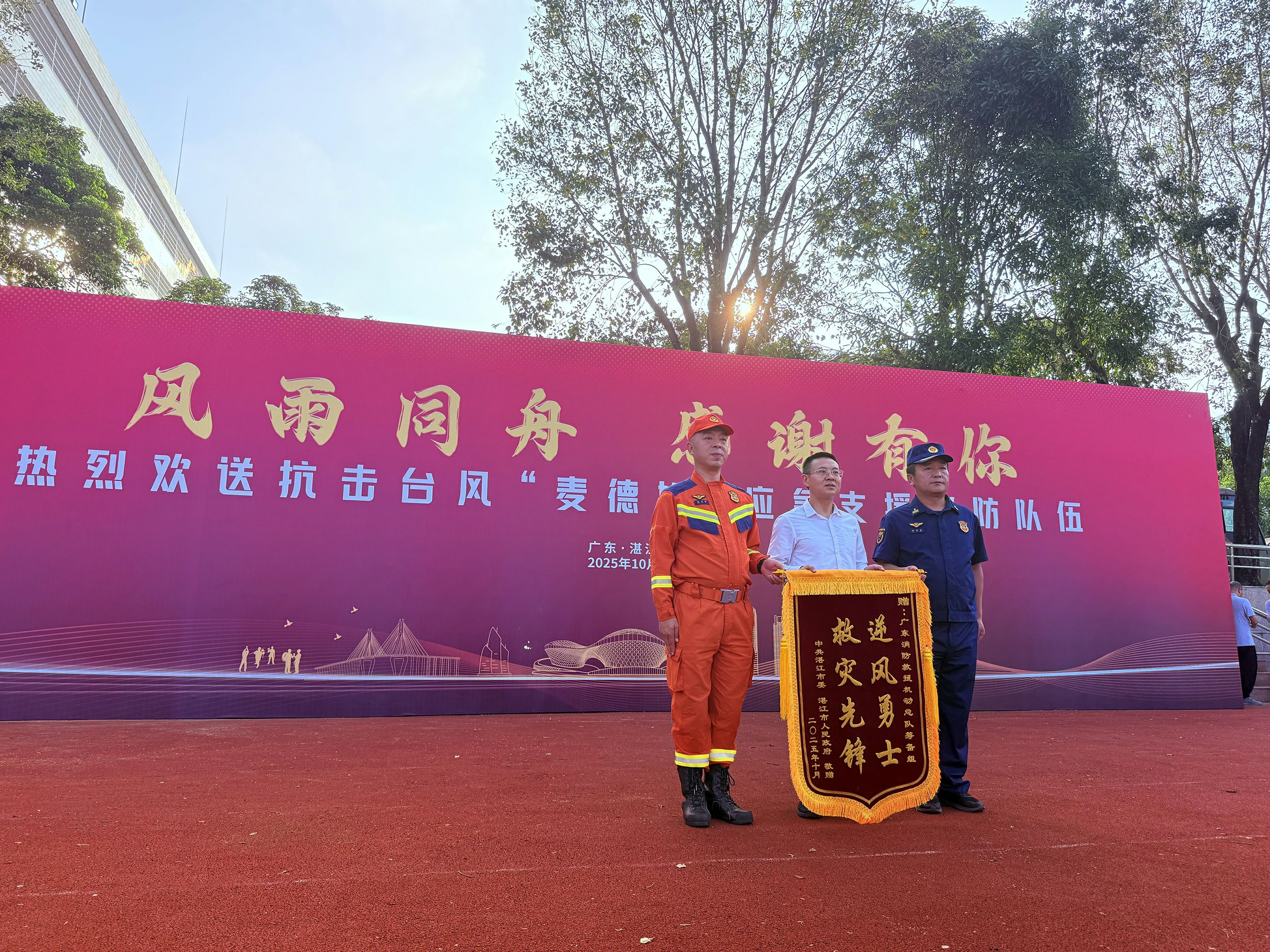 10月10日,湛江市中小学德育基地内温情涌动,一场简朴而隆重的欢送仪式在此举行,向广东消防救援机动队总队抗击台风“麦德姆”应急支援队伍的队员们致敬。