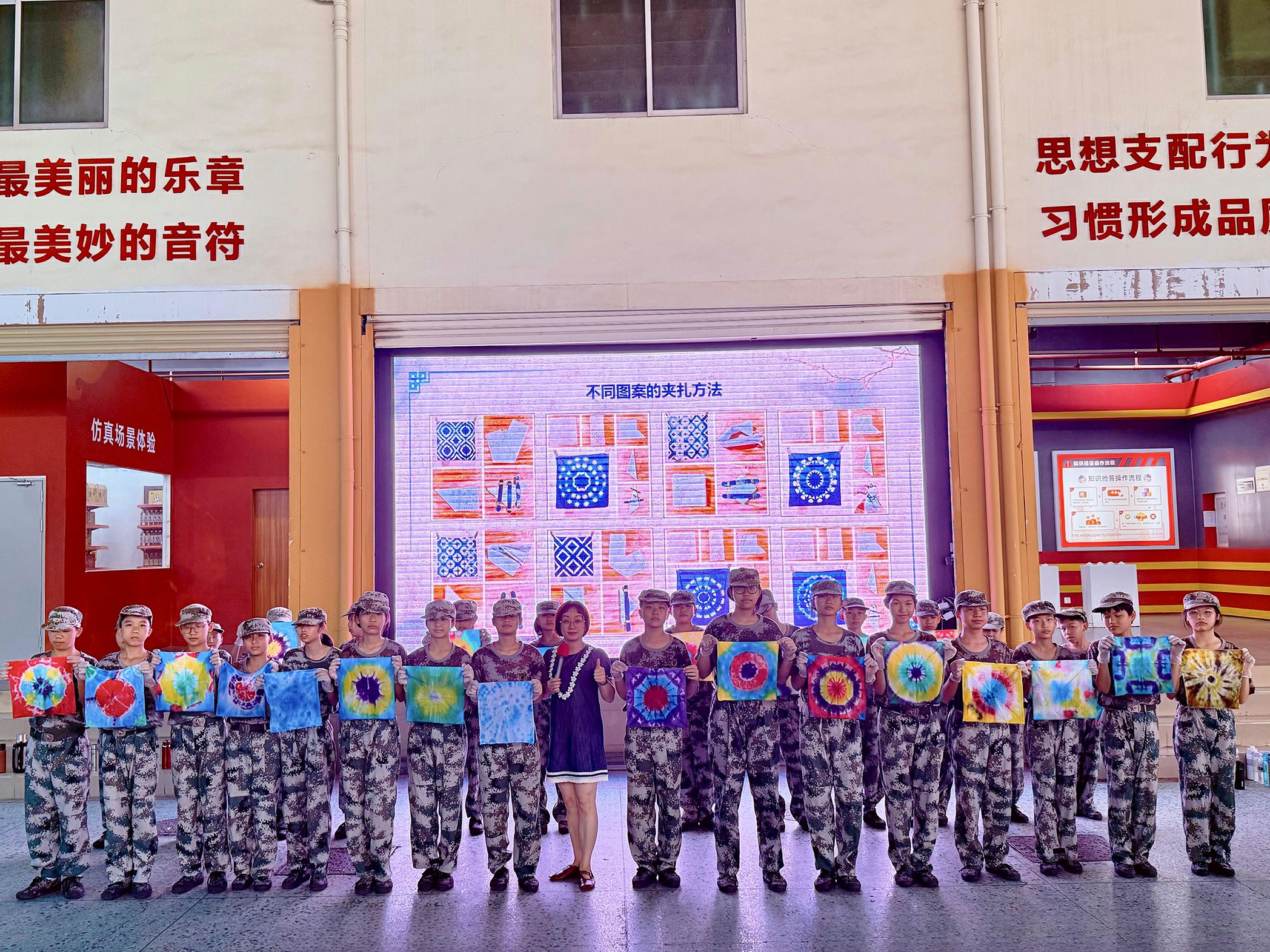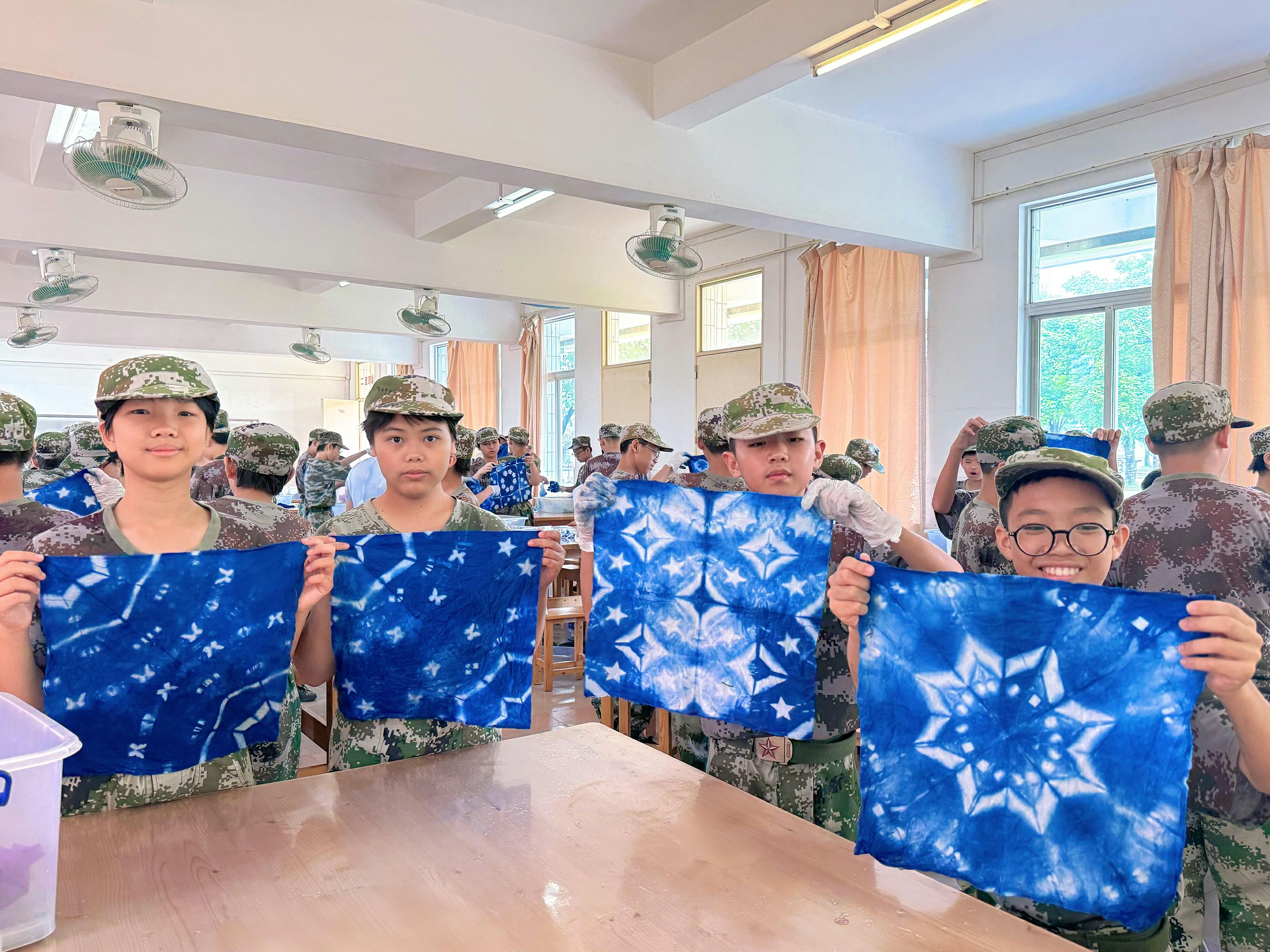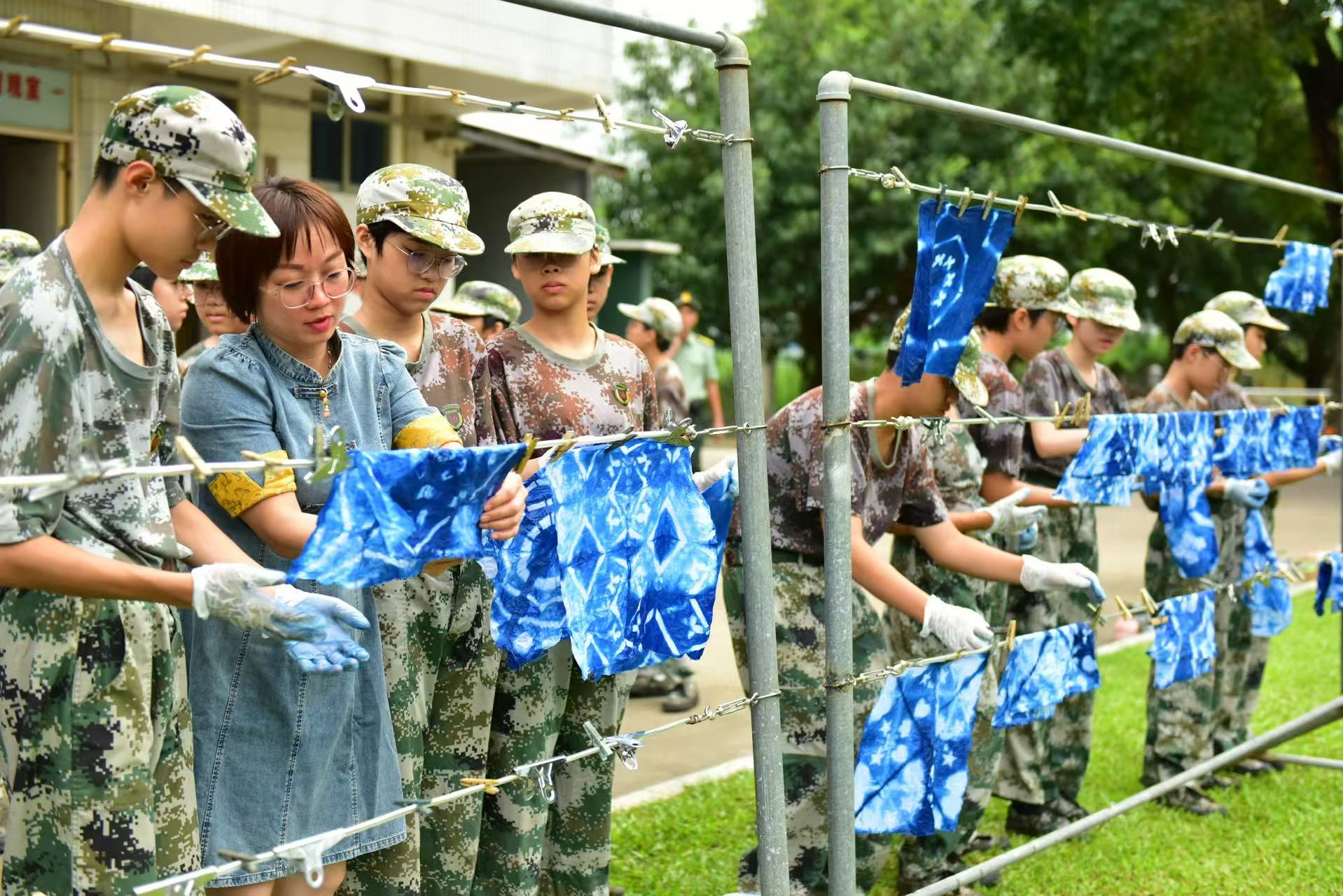 创新:突破传统蓝白配色框架,鼓励学生结合当代审美与个人表达开展彩染创作,让传统技艺与青春创意碰撞融合,赋予非遗新时代生命力。